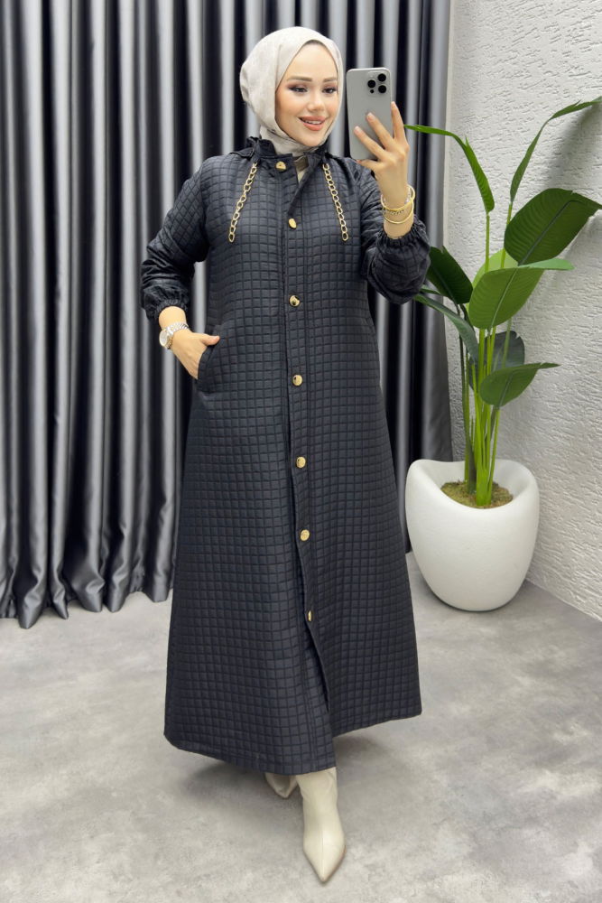 Kapitone kumaşıyla sıcak ve zarif.