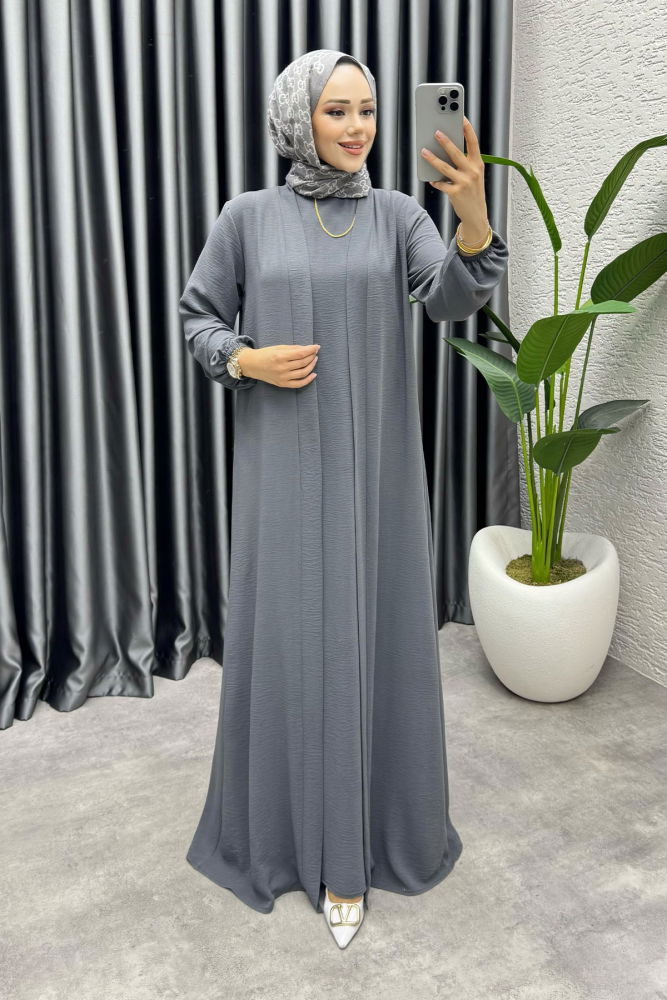 Betül İkili Abaya Elbise Takım 24686 Antrasit