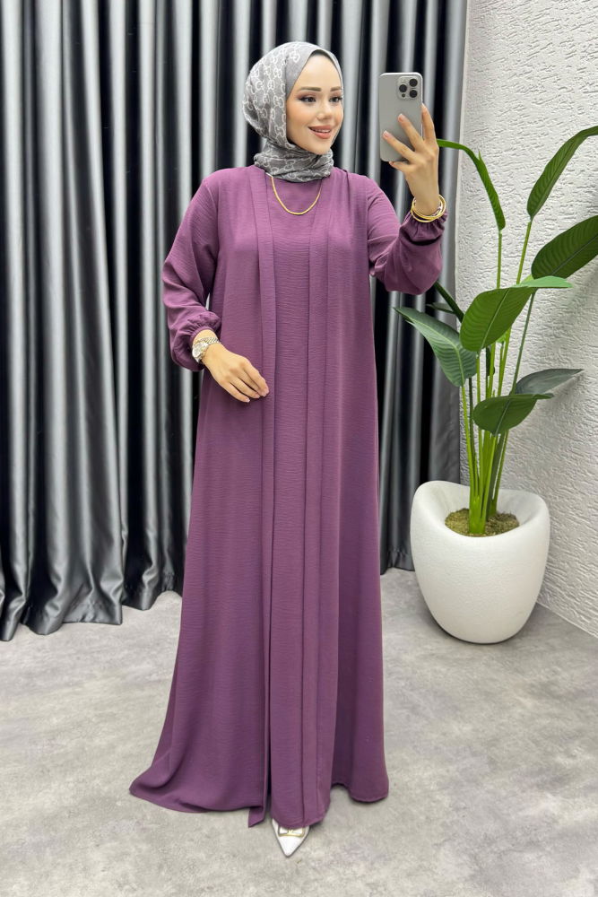 Betül İkili Abaya Elbise Takım 24686 Lila