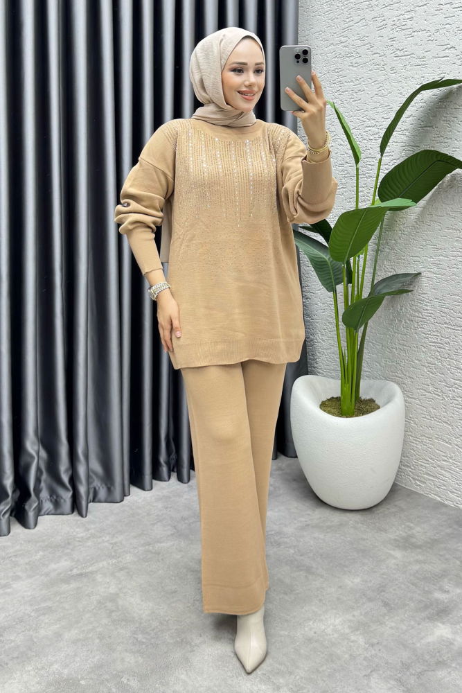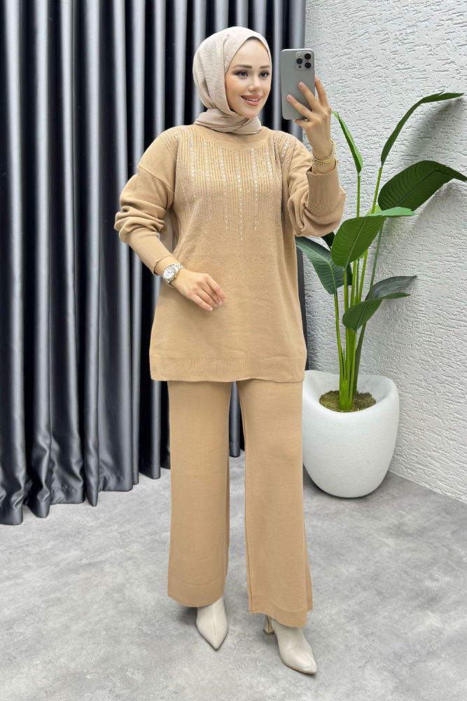Elissa Taşlı Triko Takım 1109 Latte