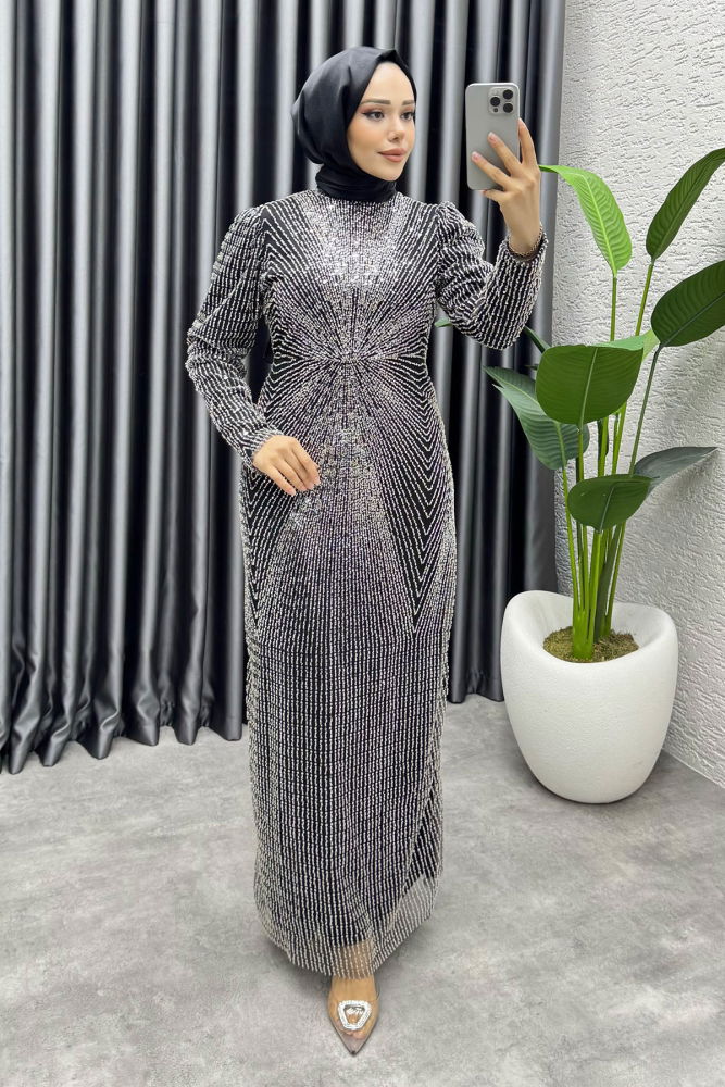 Feray Tasarım Kalem Abiye 8037 Siyah&Gümüş