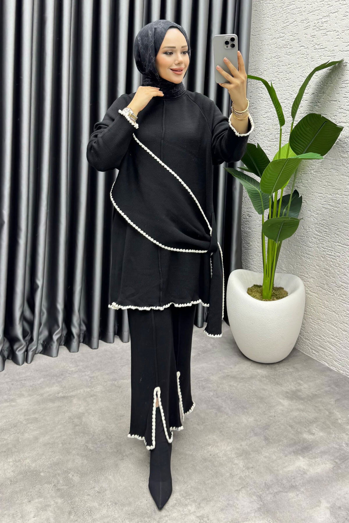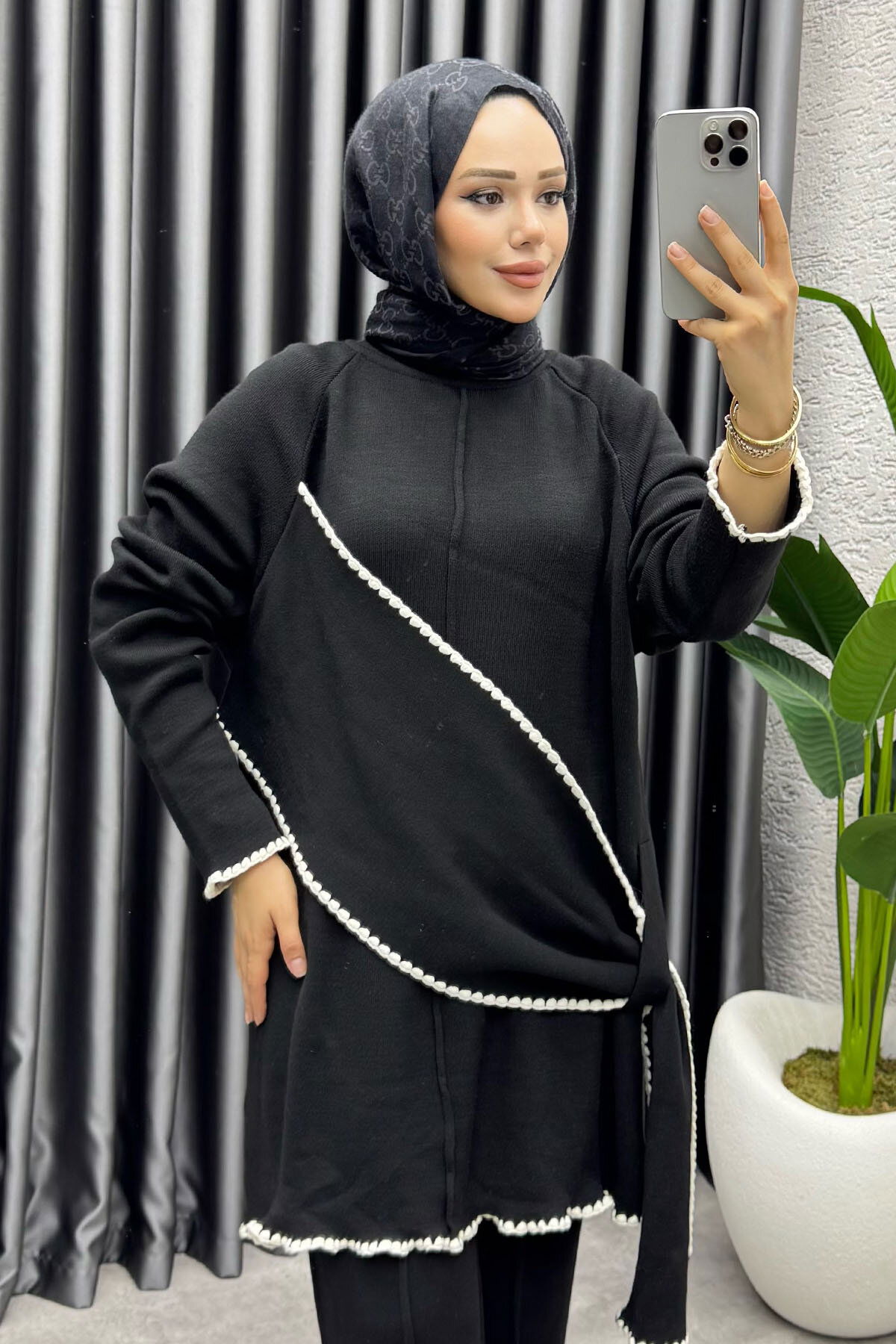 İdil Düğme Detaylı Triko Takım 1314 Taş